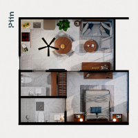 Este modelo se caracteriza por ser de una habitación y tener un baño y medio. Existen dos prototipos de una habitación, uno con el balcón en la habitación y el otro con el balcón compartido con el área social.