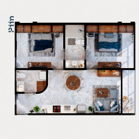 Este modelo se caracteriza por ser de dos habitaciones y tener un baño y medio.