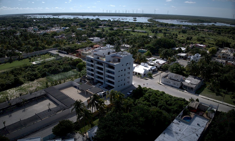 Salina se encuentra en Puerto Progreso a 30 minutos de la ciudad de Mérida y de todos los servicios, ya que se encuentra a escasos metros del malecón. La torre estará conformada por 13 departamentos y 2 penthouses con hermosas vistas.
