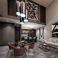 Este departamento se caracteriza por tener una doble altura en la zona de sala-comedor y la habitación principal en planta alta