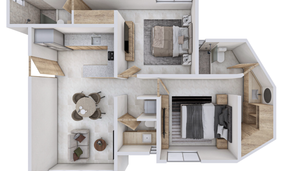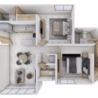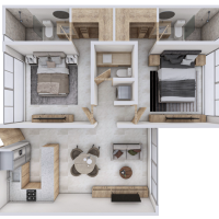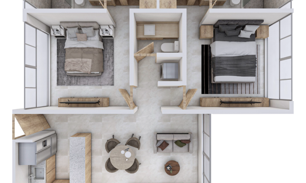 Este modelo se caracteriza por ser un modelo de 2 habitaciones con baño privado cada una, además de un área social muy cómoda