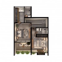 Este modelo se distingue por estra distribuido en dos plantas y tener dos habitaciones con clóset y baño cada una.