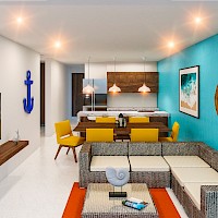 Departamentos en Olea Beach Condos, un complejo residencial conformado por 28 departamentos y 6 penthouses, distribuidos en 6 niveles en torres. Ubicadas al corazón de Chicxulub Puerto, una de las playas más concurridas en temporada vacacional, gracias a los servicios y atractivos que ofrece durante esa época.