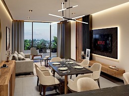 Este modelo se caracteriza por contar con 3 amplias habitaciones y un balcón con vistas a las áreas verdes y amenidades. Además de la opción de acceder al Club de Playa en la zona de Progreso.