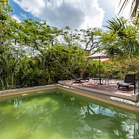 La propiedad, distribuida en un terreno de 6,200 mts2, es una invitación a la desconección y contacto con la naturaleza. Inspirada en los cascos de hacienda construidos en la época de oro del henequén en Yucatán, la casa cuenta con 4 amplias habitaciones, piscina y cientos de metros cuadrados de árboles frutales y naturaleza.