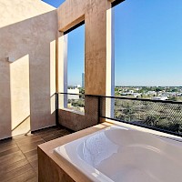 El penthouse modelo A se caracteriza por contar con la habitación principal en planta baja y dos habitaciones secundarias con terraza en el segundo nivel.