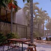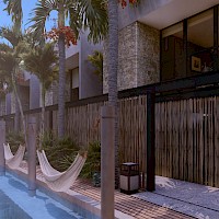 Esta propiedad se caracteriza por su diseño moderno, en donde buscaron maximizar el uso de los espacios y proporcionar la mayor privacidad posible, cuenta con dos habitaciones además de un rooftop, ideal para ver los atardeceres en la playa.
