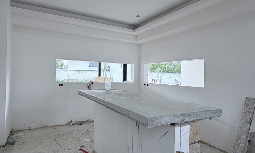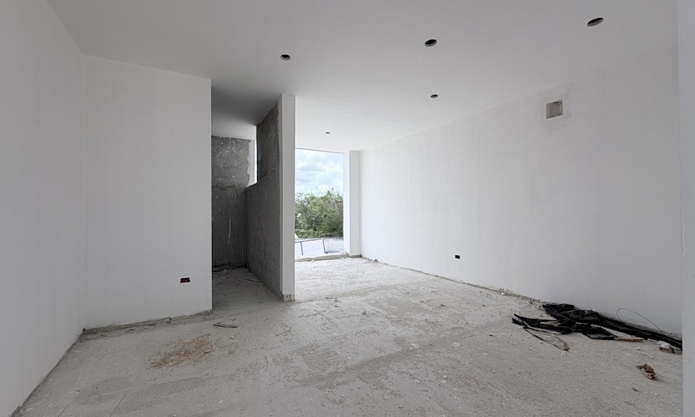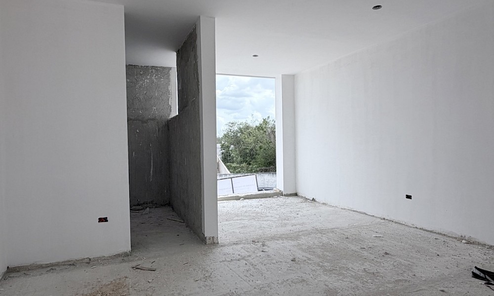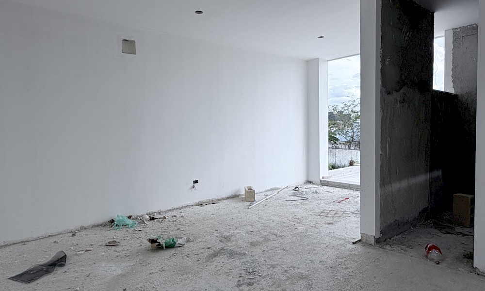 Esta opción se caracteriza por sus espacios abiertos, una cocina muy amplia y tiene la posibilidad de ampliarse a una cuarta habitación.
