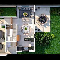 El modelo Anara se caracteriza por contar con una armoniosa distribución en dos plantas con dos habitaciones en el segundo nivel.