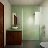 Este prototipo se caracteriza por estar distribuído en un solo nivel, contar con dos habitaciones y dos baños completos.