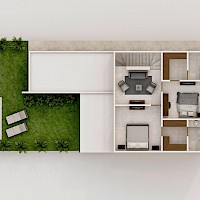 Este pequeño complejo de 8 residencias exclusivas se caracteriza por encontrarse a pie de calle, además de los espacios bien distribuidos en dos plantas con tres amplias habitaciones, ua terraza techada y piscina.