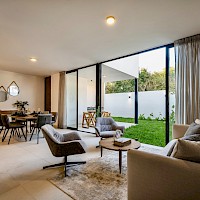 Esta opción se caracteriza por contar con tres amplias habitaciones en planta alta, además en un jardín y patio central en el primer nivel.