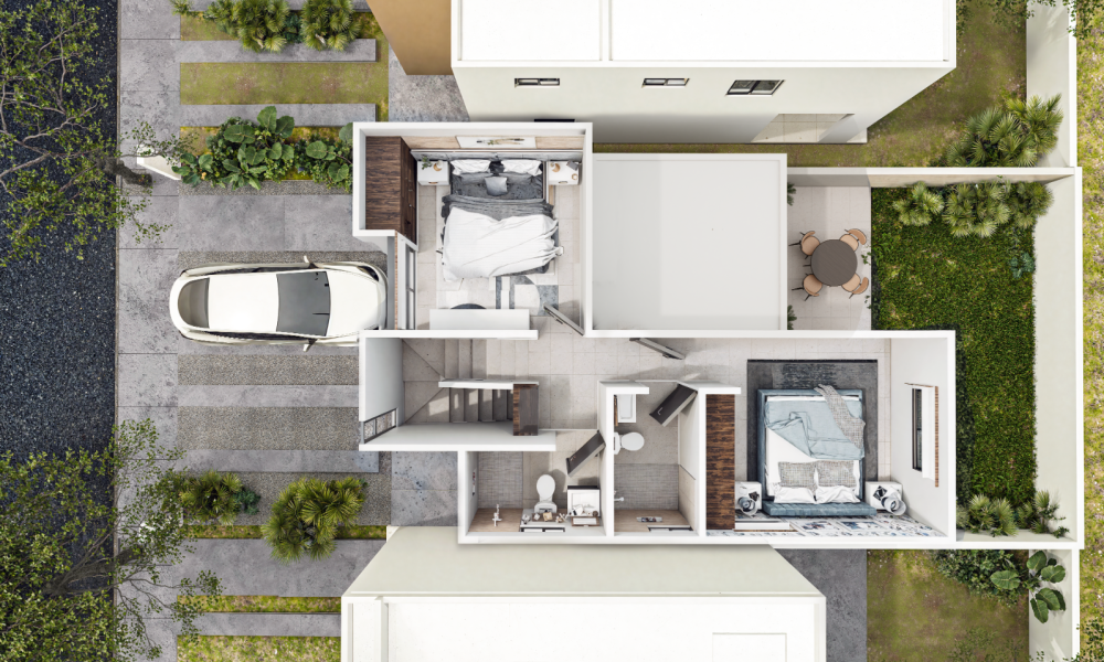 Boreal estará conformado de dos etapas, la primera con 72 unidades y la segunda de 46 casas. Este modelo se caracteriza por contar con dos habitaciones en planta alta.