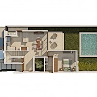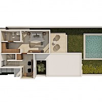 Este modelo se caracteriza por contar con una práctica habitación en planta baja, así como un área exclusiva destinada para Home Office, adaptándose a las nuevas necesidades de la vida laboral.