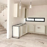 Este modelo se caracteriza por tener una distribución en dos plantas con el área de sala-comedor amplia y dos habitaciones en planta alta.