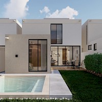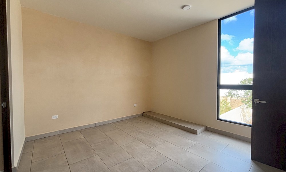 Este modelo se caracteriza por tener una habitación en planta baja, y dos habitaciones más en planta alta. Además cuenta con la posibilidad de crecimiento para una habitación adicional.