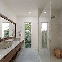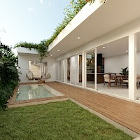 Es propiedad se caracteriza por estar distribuído en una sola planta y contar con tres habitaciones, cada un con baño propio.