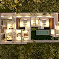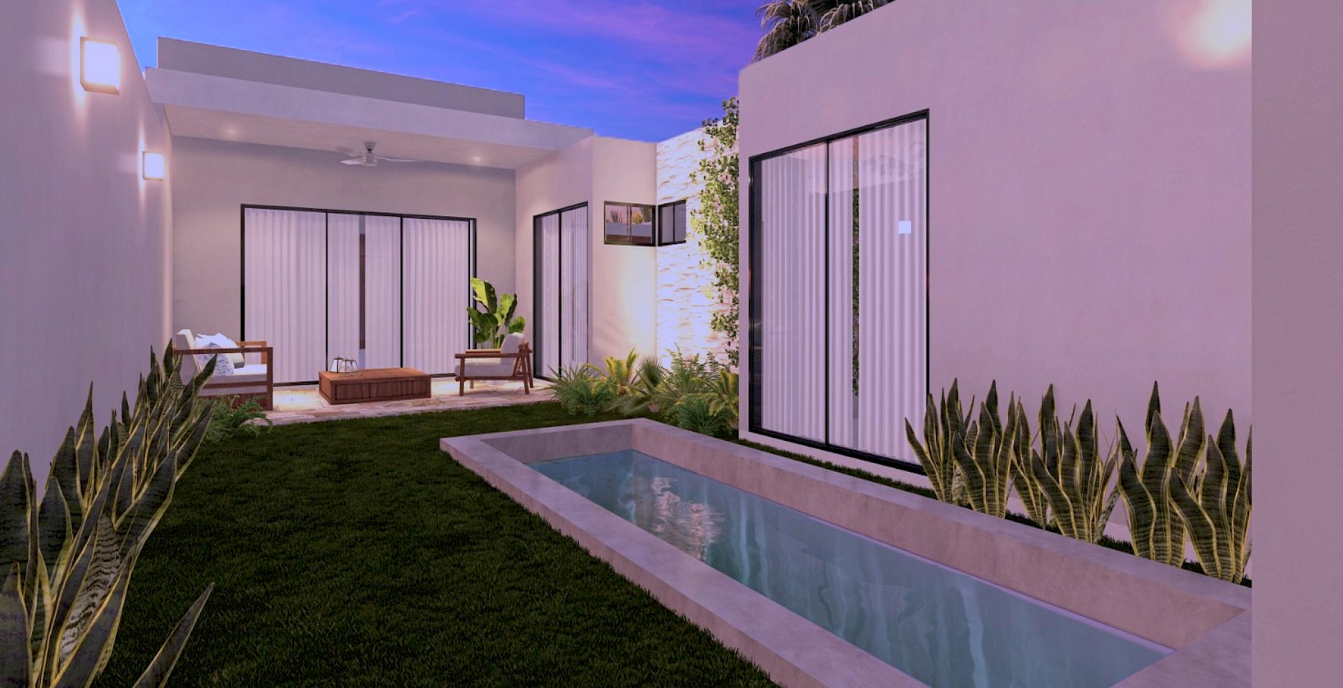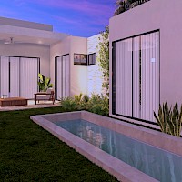 Esta propiedad destaca por estar distribuida en una sola planta, además que las tres habitaciones cuentan con baño propio y gozan de vista hacia el área de piscina y jardín.