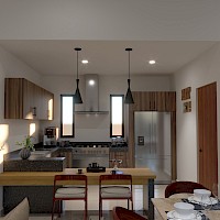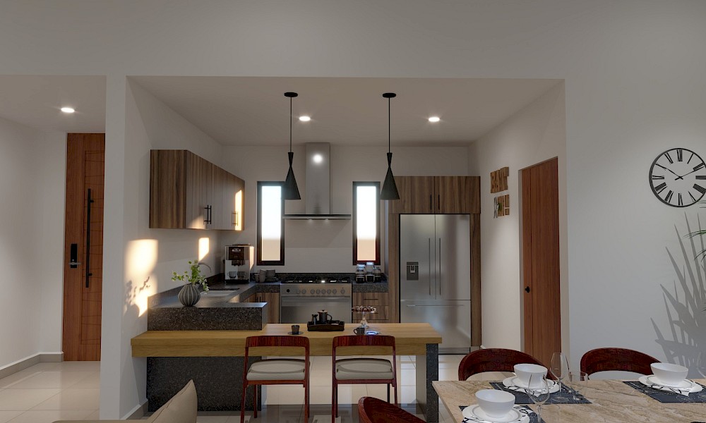 - Cocina con barra desayunadora