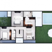 La propiedad nos recibe con una armoniosa doble altura que nos brindará mayor sensación de amplitud, ventilación e iluminación, en planta baja cuenta con habitación completa y baño privado, además de un medio baño de visitas. Y en planta alta, tenemos una amplia habitación principal, así como una tercera recámara para mayor comodidad.