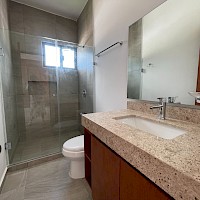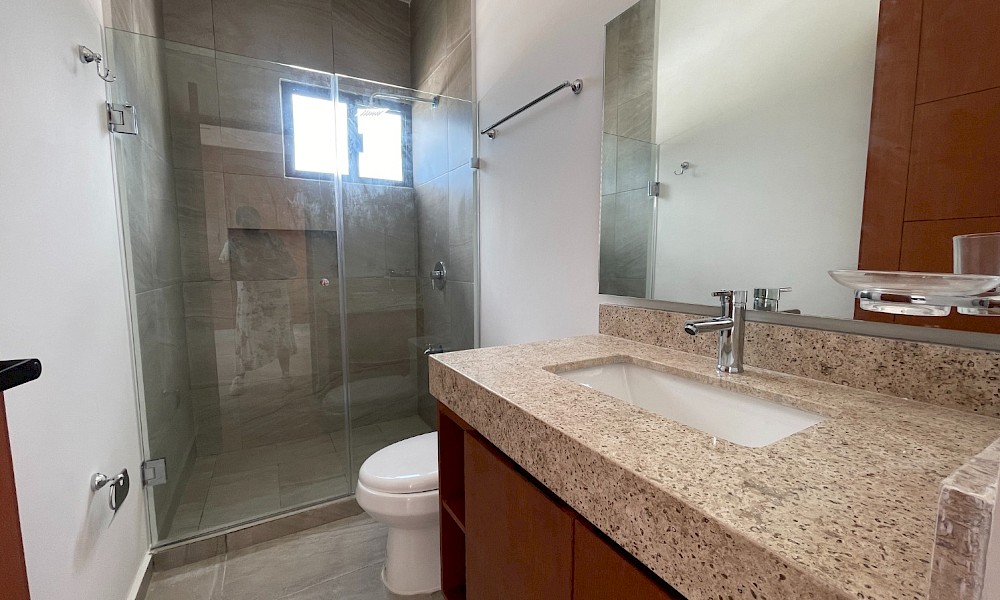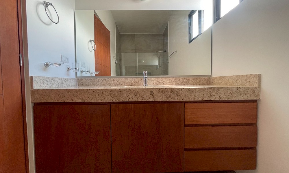 Esta propiedad se caracteriza por tener tres amplias habitaciones cada una con baño propio, además de brindarnos la opción de tener la habitación principal en planta baja o en planta alta.