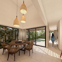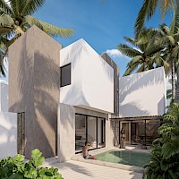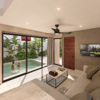 Estas casas se caracterizan por contar con la habitación principal en planta baja y por su espectacular vista desde la sala hacia la piscina.