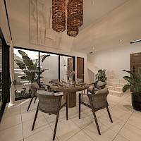 Estas casas se caracterizan por estar cómodamente distribuidas las tres habitaciones en dos plantas y por su espectacular vista desde la sala hacia la piscina.