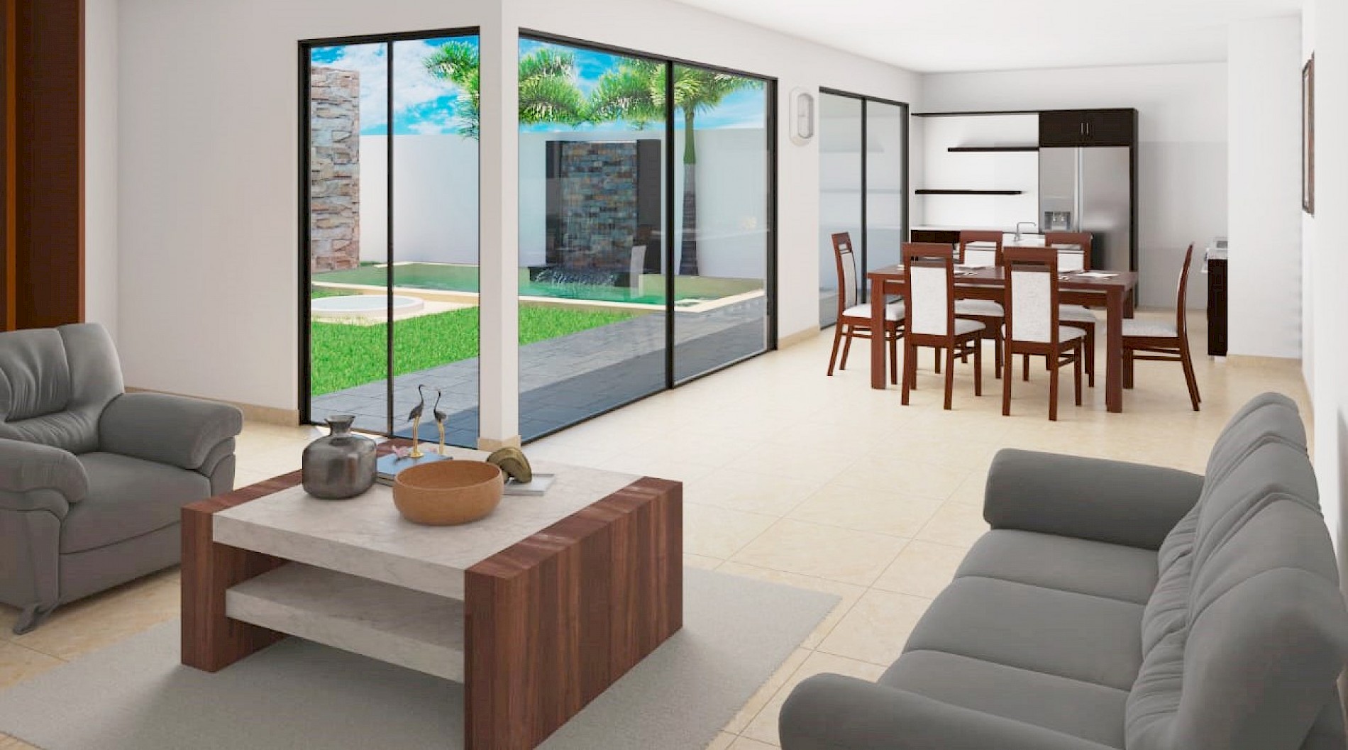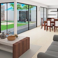 Esta propiedad se caracteriza por tener un estilo moderno, espacios abiertos y estar distribuido en una sola planta con un jacuzzi en el jardín además de la piscina.