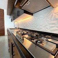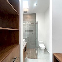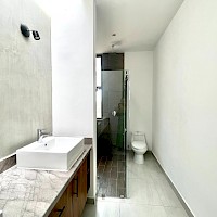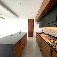 Esta propiedad se caracteriza por tener espacios abiertos, ventilados y con mucha iluminación que armoniza perfectamente con las jardineras interiores.