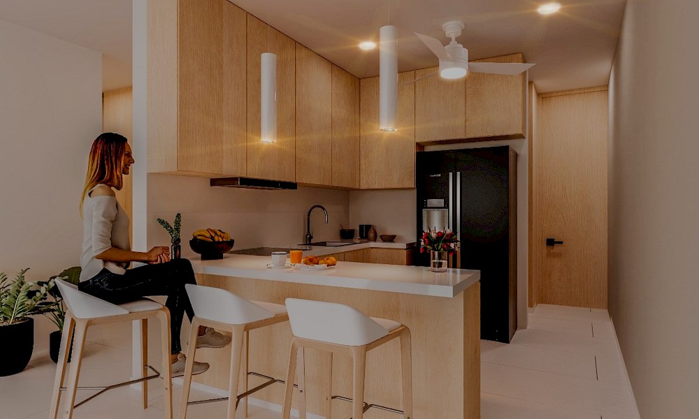 - Cocina con barra desayunadora