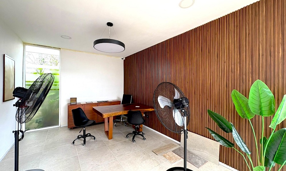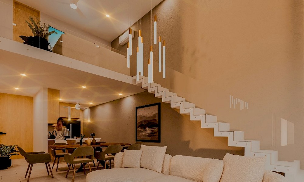 Esta propiedad se caracteriza por su diseño arquitectónico moderno, en donde destaca su amplia doble altura en el área de sala-comedor, además de brindarnos una habitación en planta baja.