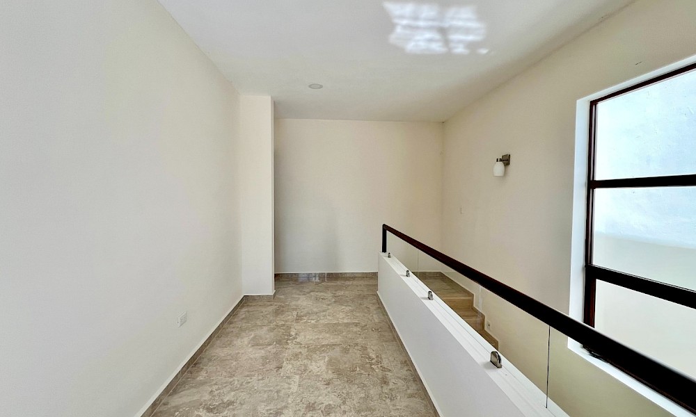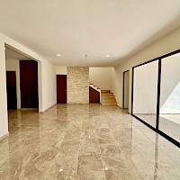 Este modelo se caracteriza por tener una armoniosa distribución en amplios espacios con dos niveles y tres habitaciones, una de ellas en planta baja para mayor comodidad.