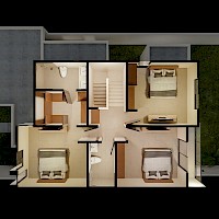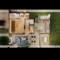 Este modelo se caracteriza por tener cuatro habitaciones, una de ellas en planta baja que puede funcionar como segunda habitación principal ya que cuenta con clóset vestidor y baño propio.