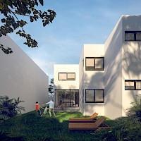 Este modelo se caracteriza por contar con tres amplias habitaciones, una de ellas en planta baja para mayor comodidad.