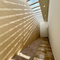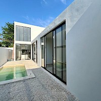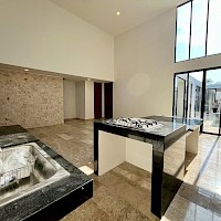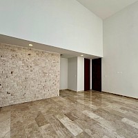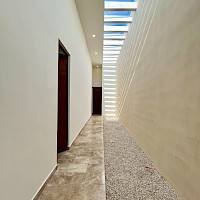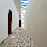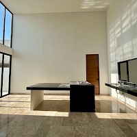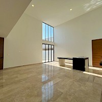 La "Casa 203" se caracteriza por contar con un área de sala-comedor a doble altura, además de tres habitaciones en planta baja y un área de servicio o cuarta habitación en el primer nivel.