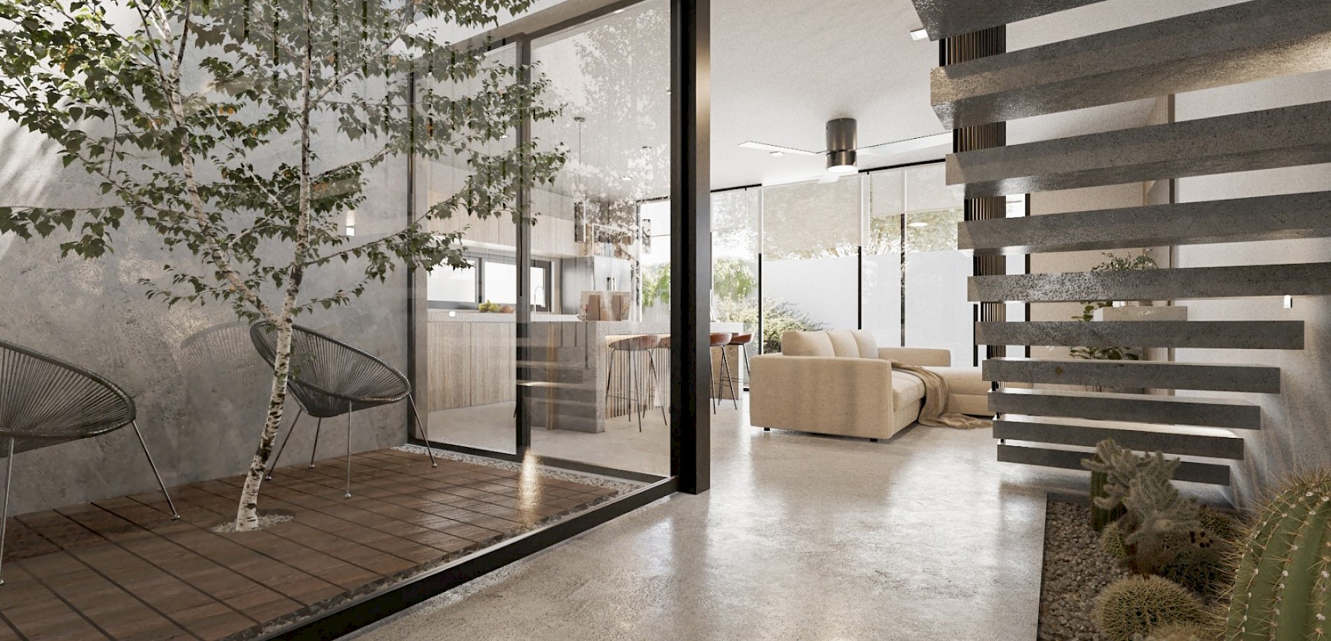 El modelo Terra se caracteriza por tener tres habitaciones en planta, la principal con amplio espacio para clóset vestidor.
