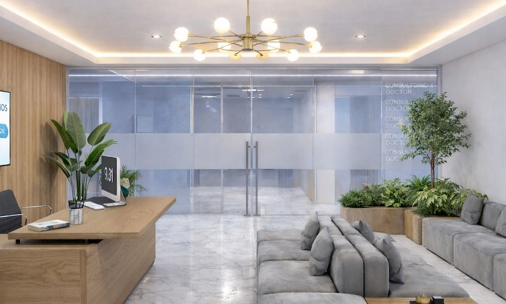 Los consultorios se entregarán con fachada de cristal templado, salidas hidráulicas, sanitarias y eléctricas así como instalación para voz y datos.