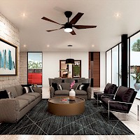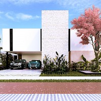 Este modelo se distingue por tener un estacionamiento con capacidad para 4 vehículos, dos bajo techo y dos al aire libre.