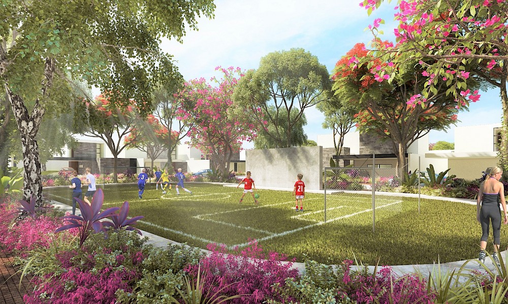 El desarrollo tiene más de 29,000 m2 de amenidades y áreas verdes con arquitectura distintiva y amigable con el entorno, siendo la amenidad principal la Casa Club.