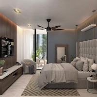 El modelo de 2 habitaciones cuenta con una hermosa terraza interior con gratas vistas a las áreas verdes ya que se encuentra en los niveles más altos de la torre.
