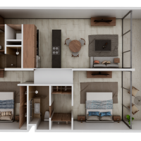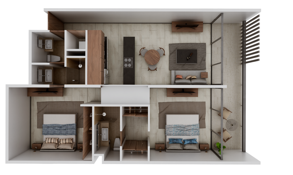 El departamento A se caracteriza por contar con dos habitaciones, la principal con terraza y tener la opción de encontrarse del primer al cuarto nivel.