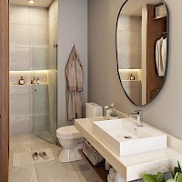 Este modelo se caracteriza por estar distribuido en dos niveles, tener una habitación con baño en planta baja y un rooftop con mastersuite, piscina y terraza en planta alta.