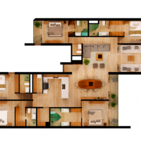El modelo Ambar se caracteriza por estar distribuido en tener 5 habitaciones completas, cada una con su baño propio. Además de una estancia de excelente tamaño, ideal para pasar las tardes.