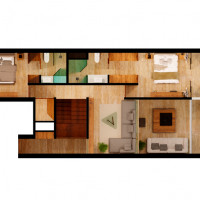 El modelo Cuarzo se caracteriza por estar distribuido en 2 plantas y tener 3 habitaciones, una de ellas en planta baja.