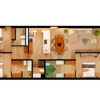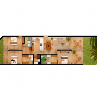 El modelo Turquesa se caracteriza por tener 3 habitaciones, cada una con baño. Existe la opción garden que tiene un espacio de jardín privado y piscina privada por una diferencia de precio.
