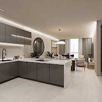 El complejo estará conformado por una zona comercial y cuatro torres residenciales, la primera torre en venta contará con 54 departamentos. El modelo C se caracteriza por tener tres habitaciones, la principal con vista a la terraza.