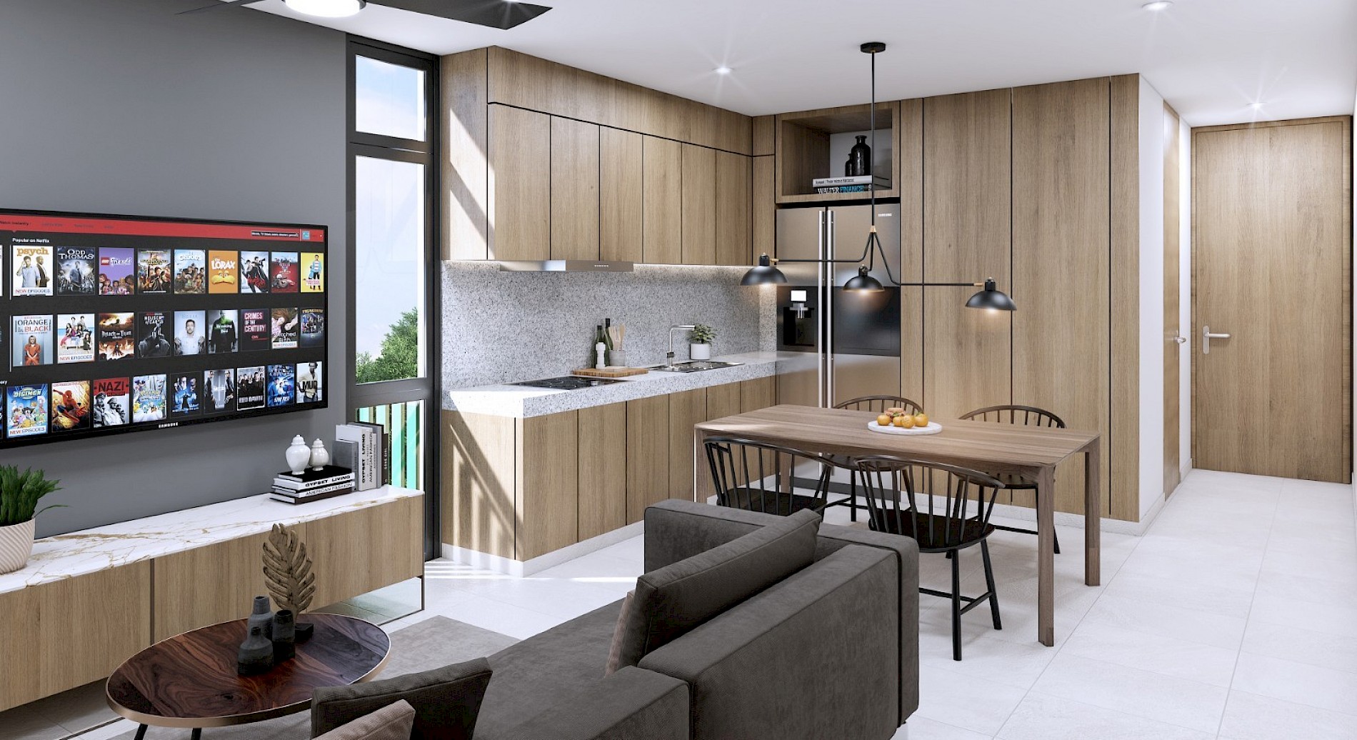 Departamento en preventa dentro de Apartamentes, la cual cuenta con control de acceso las 24 horas. Se ubica en la zona de Montebello, en el norte de la ciudad de Mérida, a escasos minutos de plazas comerciales como La Isla, hospitales de prestigio y variedad de áreas de entretenimiento.