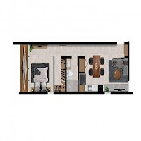 Apartamentes se conformará de 25 exclusivos departamentos y área social de rooftop. El modelo Asana se caracteriza por contar con una amplia habitación con balcón.