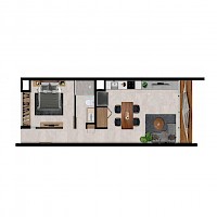 Apartamentes se conformará de 25 exclusivos departamentos y área social de rooftop. El modelo Yama se caracteriza por contar con un área social de sala-comedor con vistas al balcón y una amplia habitación.