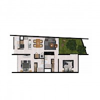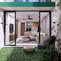 Apartamentes se conformará de 25 exclusivos departamentos y área social de rooftop. El modelo Zen se caracteriza por contar con dos amplias habitaciones cada una con baño propio y un área de jardín.